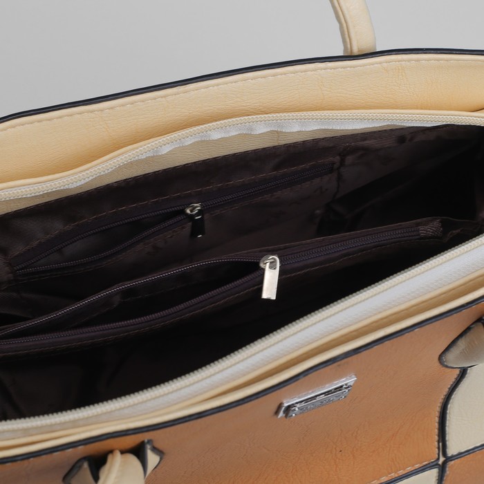 Сумка женская, отдел с перегородкой на молнии, наружный карман, длинный ремень, цвет бежевый