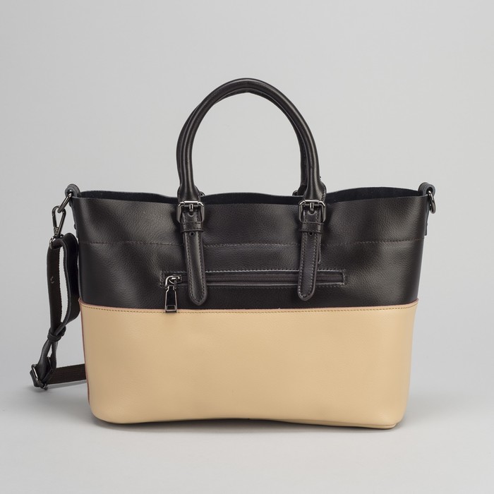 Сумка женская, отдел с перегородкой на молнии, наружный карман, длинный ремень, цвет бежевый/коричневый