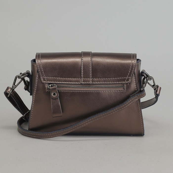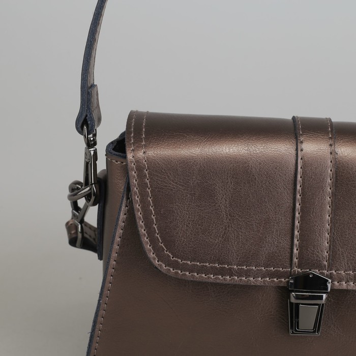 Сумка женская, отдел с перегородкой на молнии, наружный карман, длинный ремень, цвет бронзовый