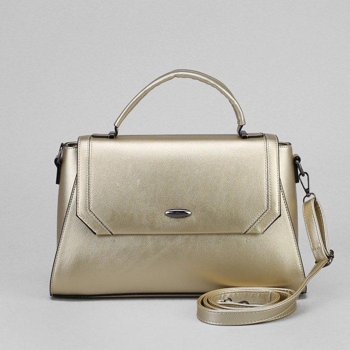 Сумка женская, отдел с перегородкой на молнии, наружный карман, длинный ремень, цвет бронзовый