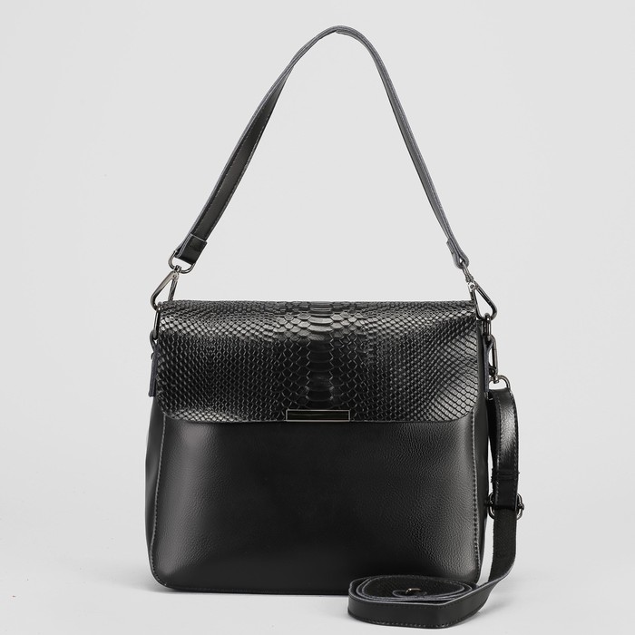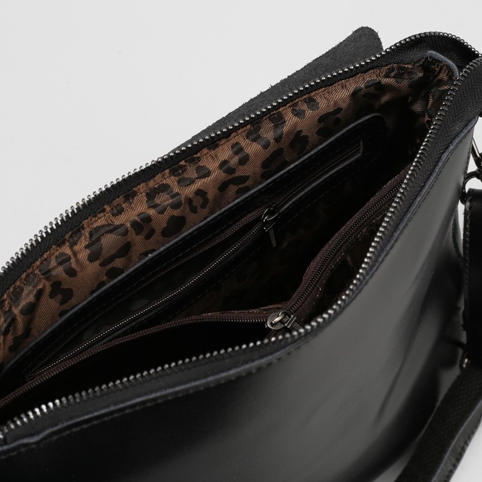 Сумка женская, отдел с перегородкой на молнии, наружный карман, длинный ремень, цвет чёрный