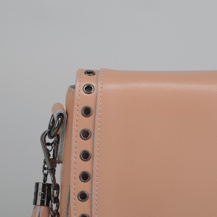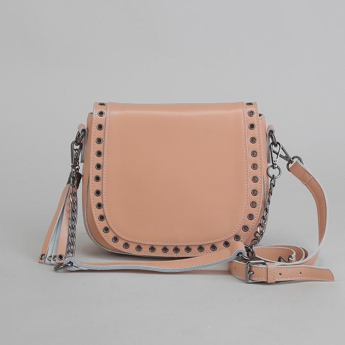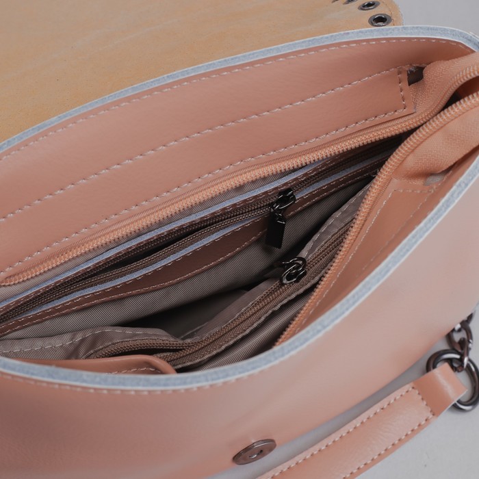 Сумка женская, отдел с перегородкой на молнии, наружный карман, длинный ремень, цвет пудровый