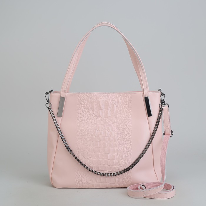 Сумка женская, отдел с перегородкой на молнии, наружный карман, длинный ремень, цвет розовый