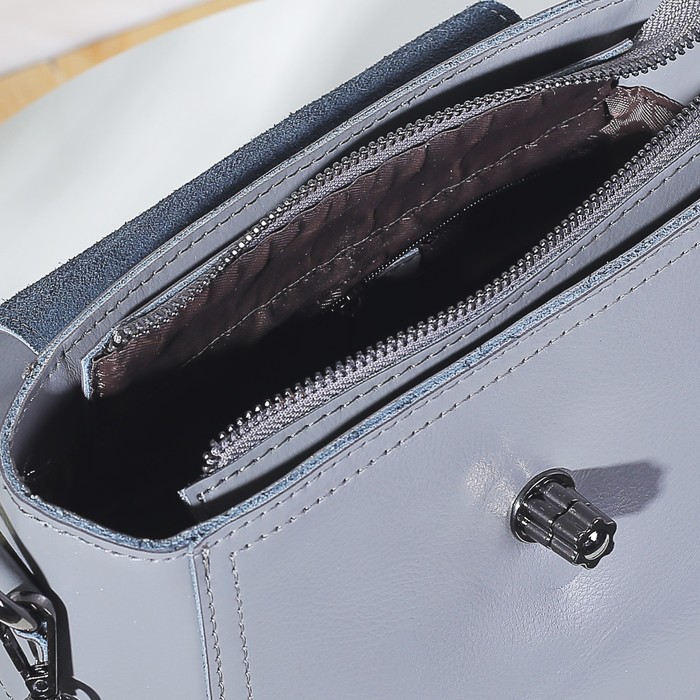 Сумка женская, отдел с перегородкой на молнии, наружный карман, длинный ремень, цвет серый