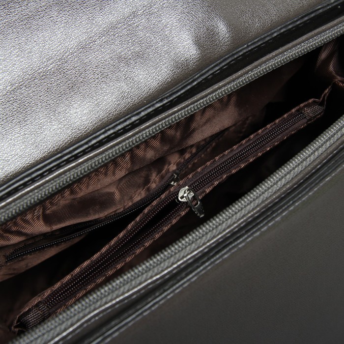 Сумка женская, отдел с перегородкой на молнии, наружный карман, длинный ремень, цвет серый