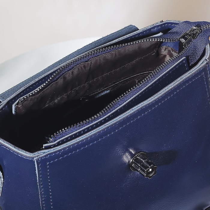 Сумка женская, отдел с перегородкой на молнии, наружный карман, длинный ремень, цвет синий