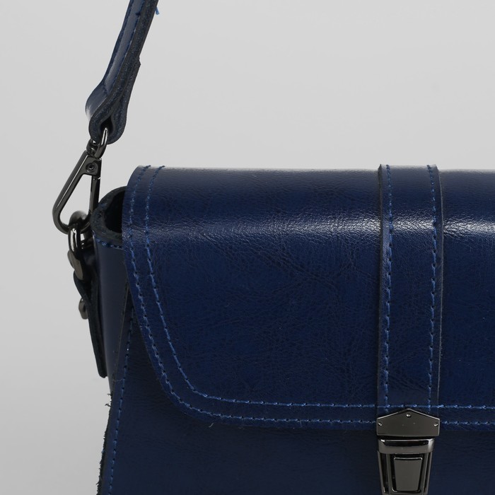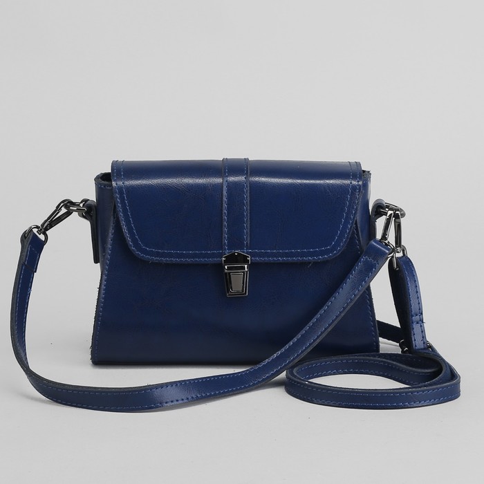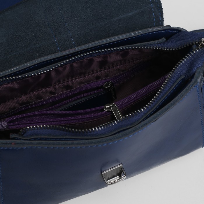 Сумка женская, отдел с перегородкой на молнии, наружный карман, длинный ремень, цвет синий