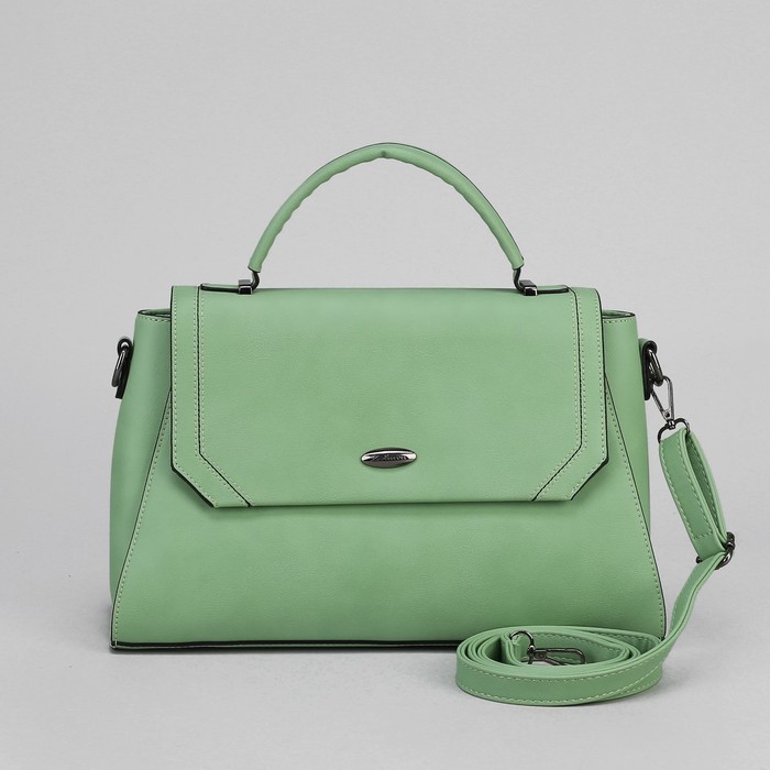 Сумка женская, отдел с перегородкой на молнии, наружный карман, длинный ремень, цвет зелёный