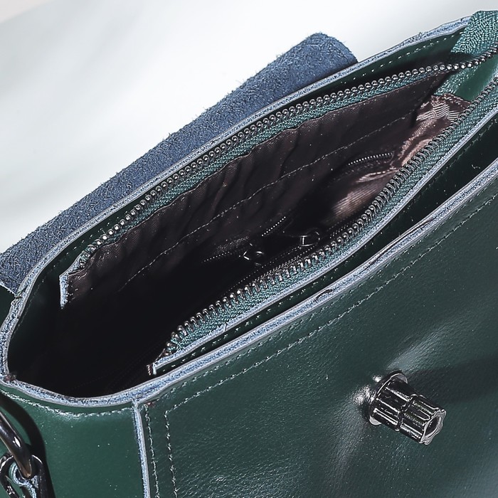 Сумка женская, отдел с перегородкой на молнии, наружный карман, длинный ремень, цвет зелёный