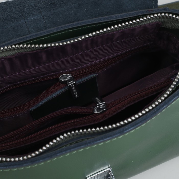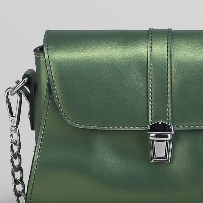 Сумка женская, отдел с перегородкой на молнии, наружный карман, длинный ремень, цвет зелёный перламутровый