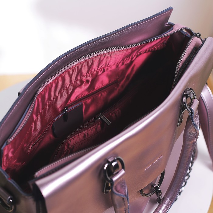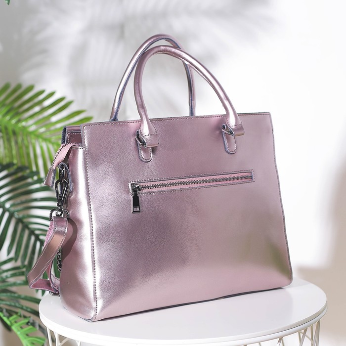 Сумка женская, отдел с перегородкой на молнии, наружный карман, длинный ремень, розовый перламутр