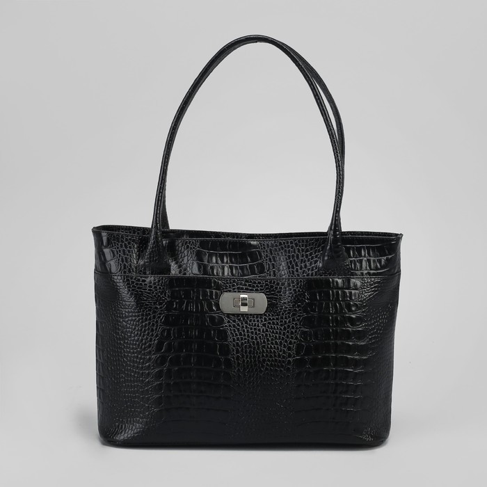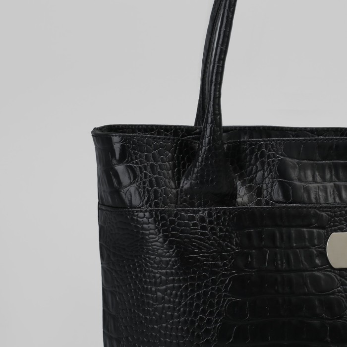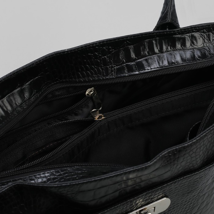 Сумка женская, отдел с перегородкой на молнии, наружный карман, кайман/шик, цвет чёрный