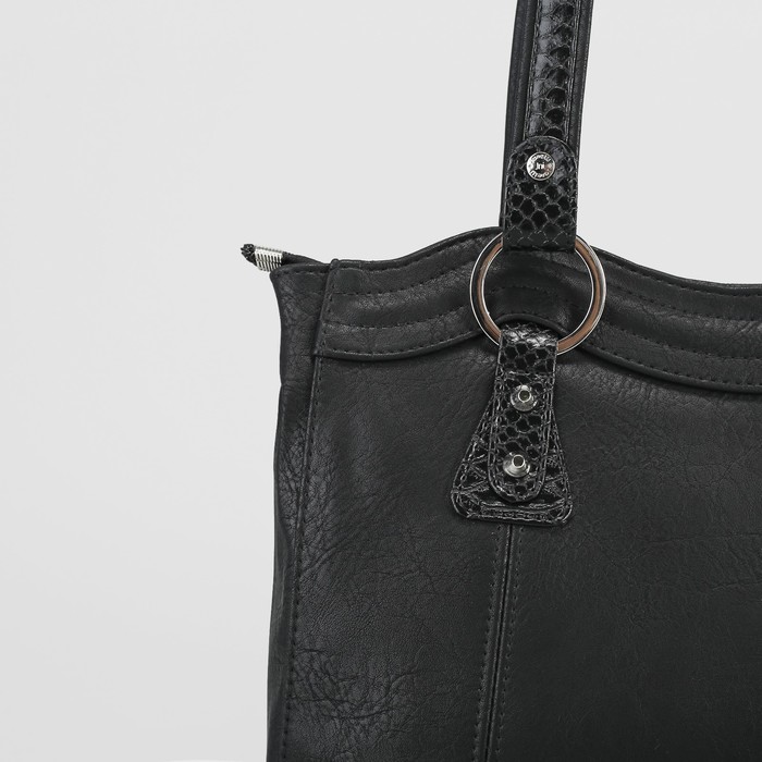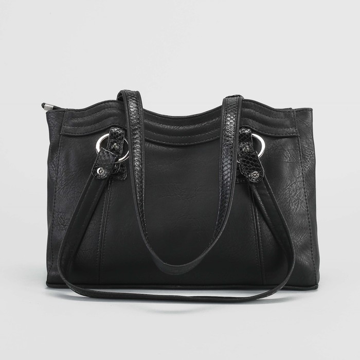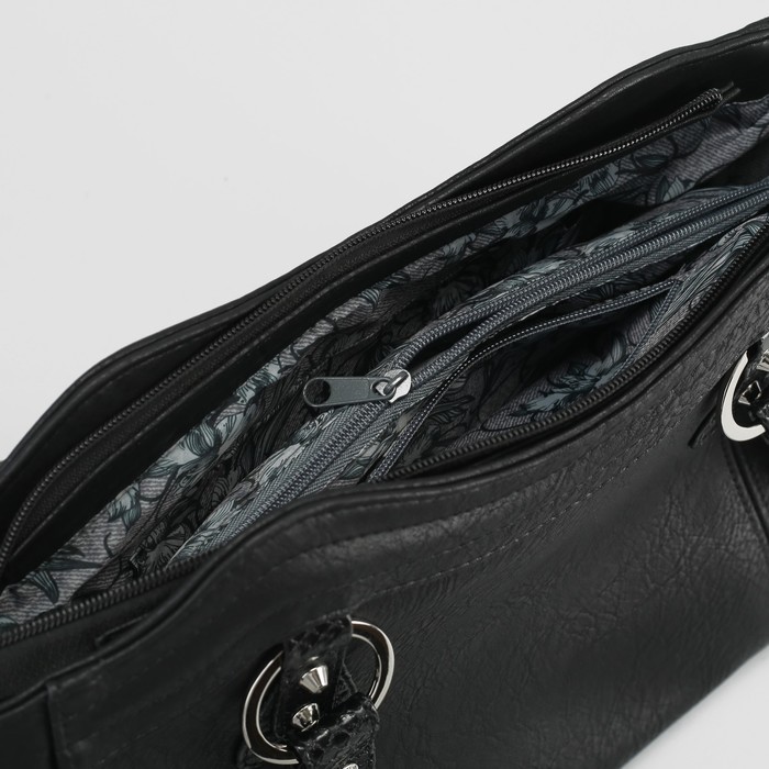 Сумка женская, отдел с перегородкой на молнии, наружный карман, крокодил, цвет чёрный