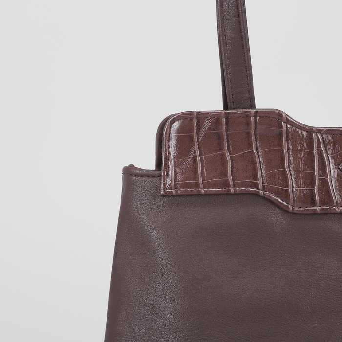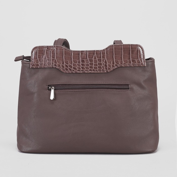 Сумка женская, отдел с перегородкой на молнии, наружный карман, крокодил, цвет шоколадный