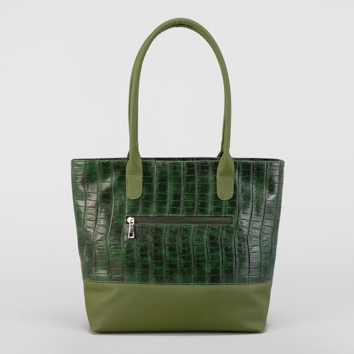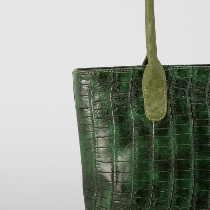 Сумка женская, отдел с перегородкой на молнии, наружный карман, крокодил, цвет зелёный