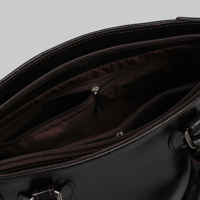 Сумка женская, отдел с перегородкой на молнии, наружный карман, сафьян шик/гладкий шик, цвет коричневый