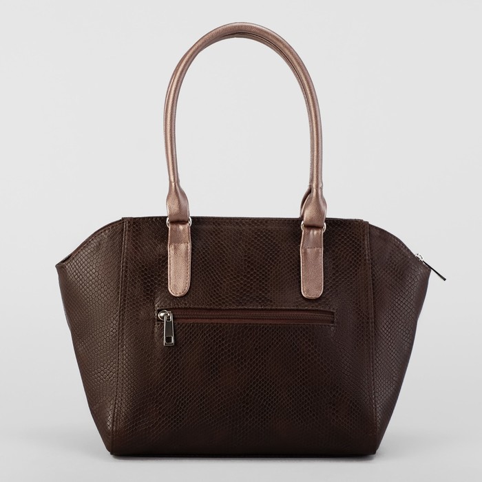 Сумка женская, отдел с перегородкой на молнии, наружный карман, змея, цвет коричневый