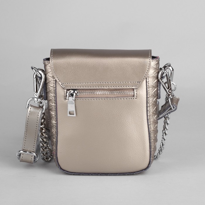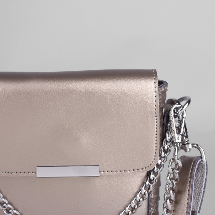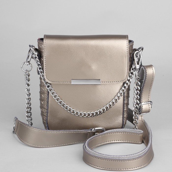 Сумка женская, отдел с перегородкой, наружный карман, 2 цепи, длинный ремень, цвет бронзовый
