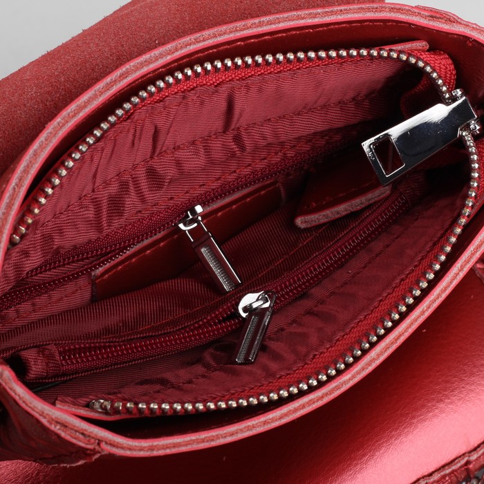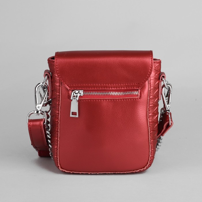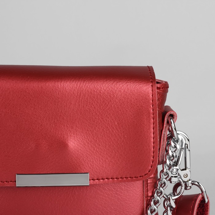 Сумка женская, отдел с перегородкой, наружный карман, 2 цепи, длинный ремень, цвет красный перламутр