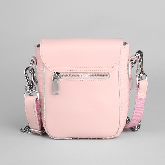 Сумка женская, отдел с перегородкой, наружный карман, 2 цепи, длинный ремень, цвет розовый