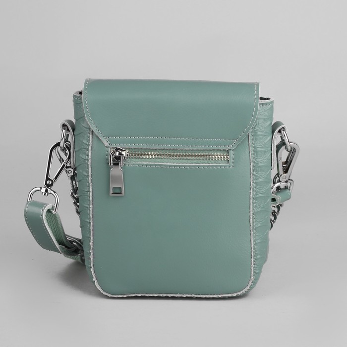 Сумка женская, отдел с перегородкой, наружный карман, 2 цепи, длинный ремень, цвет зелёный