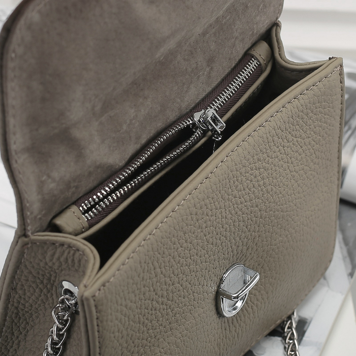 Сумка женская, отдел с перегородкой, наружный карман, длинная цепь, цвет серый