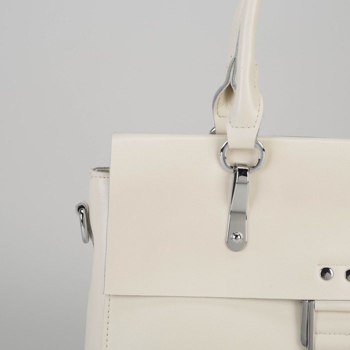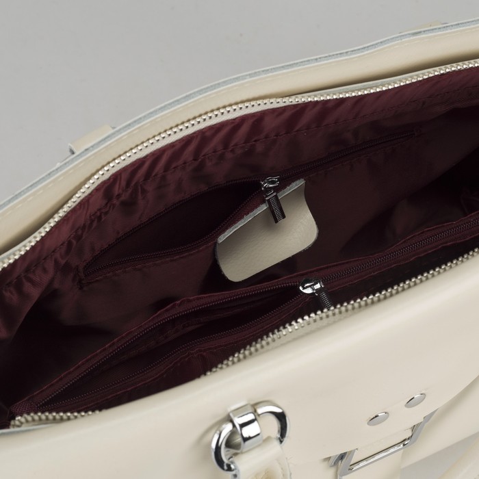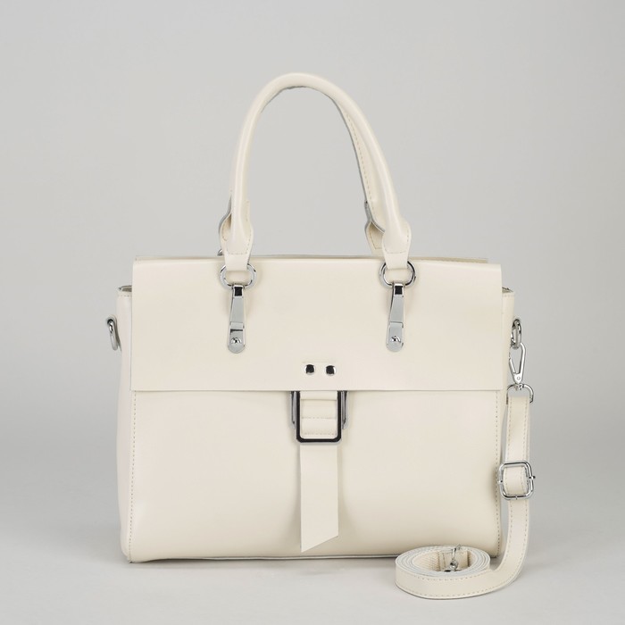 Сумка женская, отдел с перегородкой, наружный карман, длинный ремень, цвет молочный