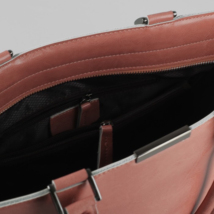 Сумка женская, отдел с перегородкой, наружный карман, длинный ремень, цвет пудровый