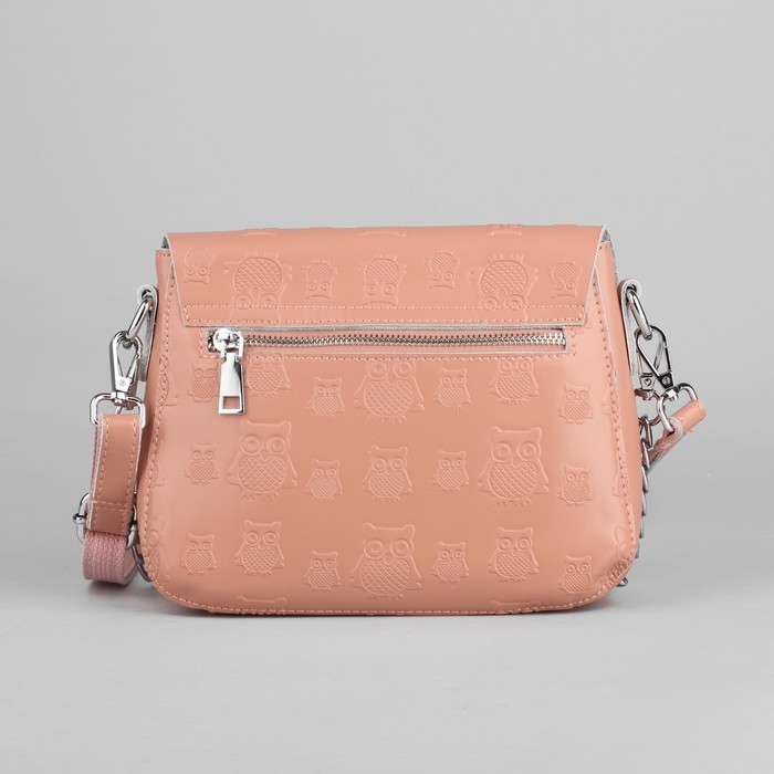 Сумка женская, отдел с перегородкой, наружный карман, длинный ремень, цвет пудровый