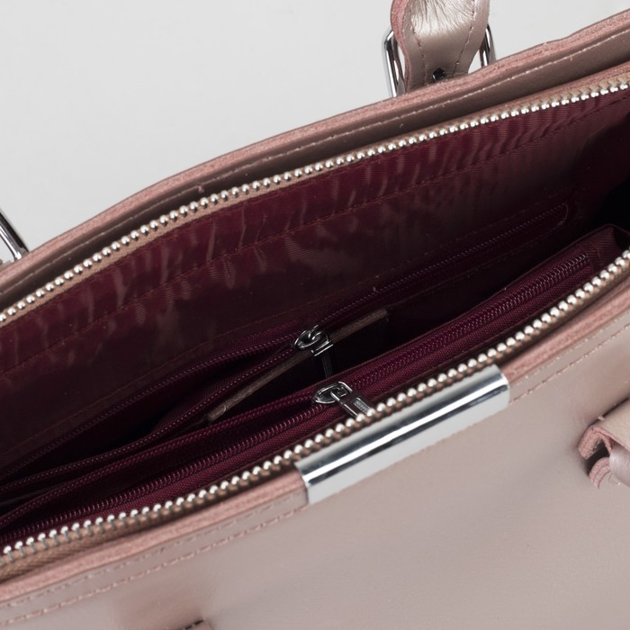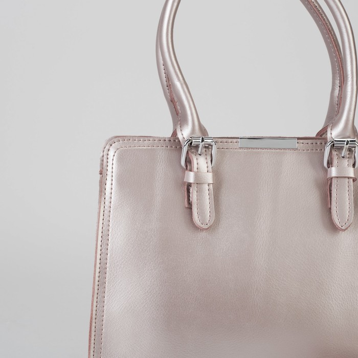 Сумка женская, отдел с перегородкой, наружный карман, длинный ремень, цвет пудровый перламутр