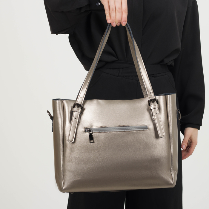 Сумка женская, отдел с перегородкой, наружный карман, длинный ремень, цвет серебристый