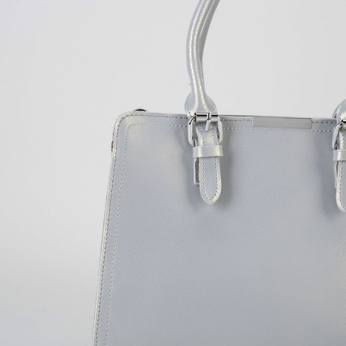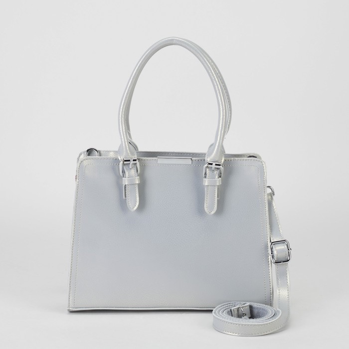 Сумка женская, отдел с перегородкой, наружный карман, длинный ремень, цвет серый перламутр