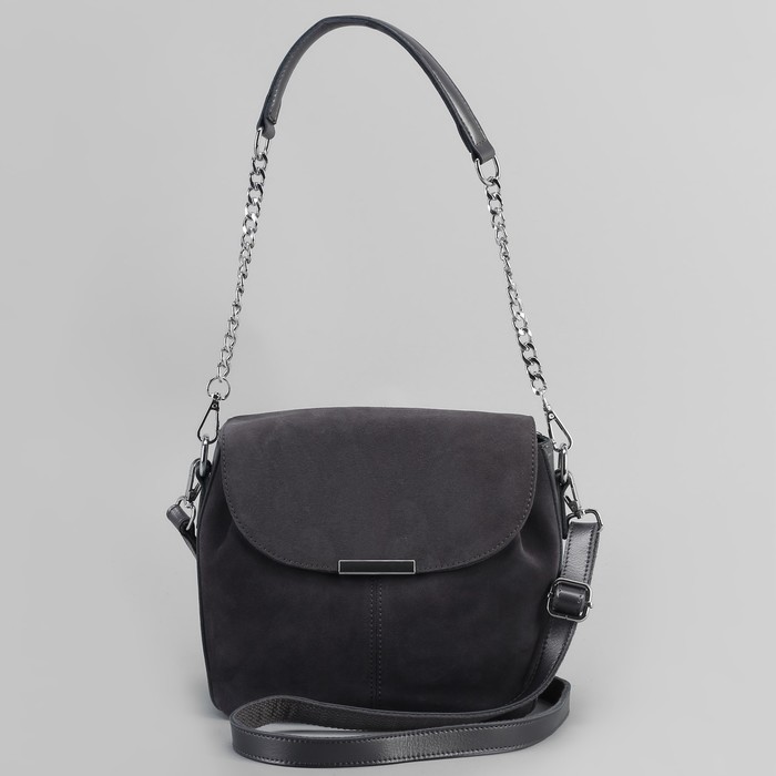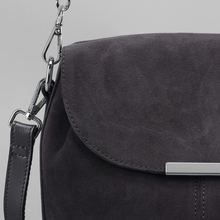 Сумка женская, отдел с перегородкой, наружный карман, длинный ремень, цвет серый