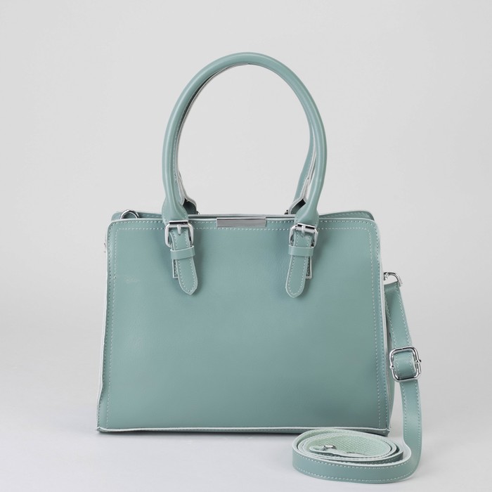 Сумка женская, отдел с перегородкой, наружный карман, длинный ремень, цвет тёмный мятный