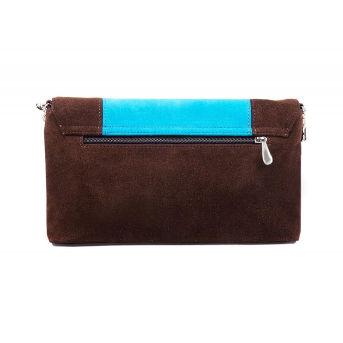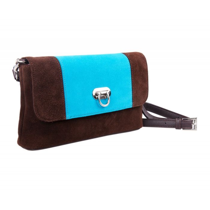 Сумка женская, отделение на молнии, наружный карман, регулируемый ремень, цвет коричневый/голубой