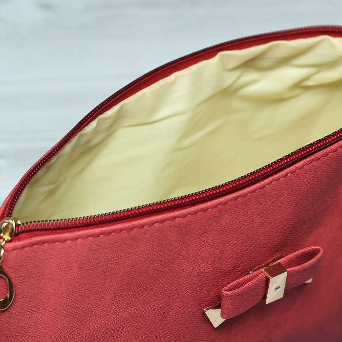Сумка женская с бантом, отдел на молнии, с ручкой, длинный ремень, цвет бордовый