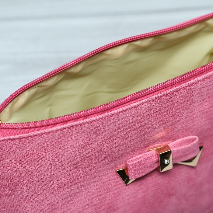 Сумка женская с бантом, отдел на молнии, с ручкой, длинный ремень, цвет малиновый