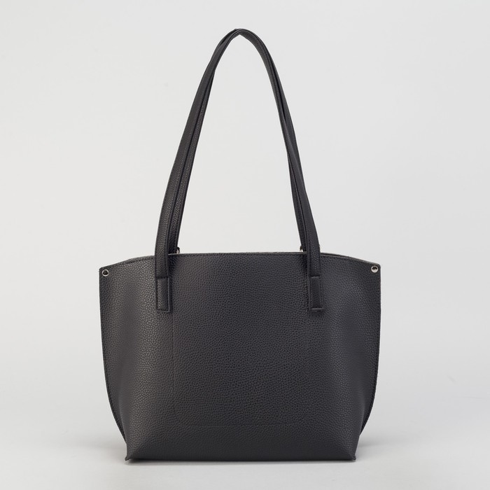 Сумка женская, с косметичкой, отдел на молнии, наружный карман, длинный ремень, цвет чёрный