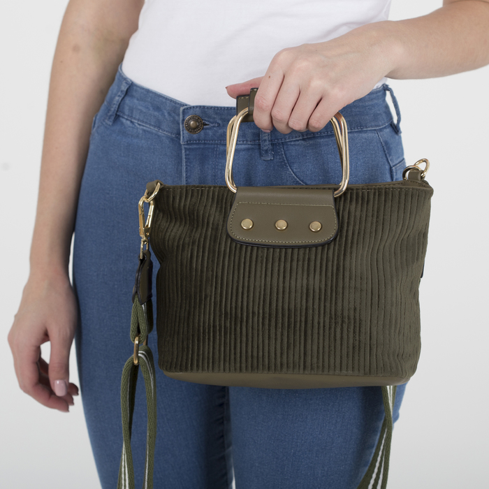 Сумка женская, вельвет, отдел с перегородкой, длинный ремень, цвет зелёный