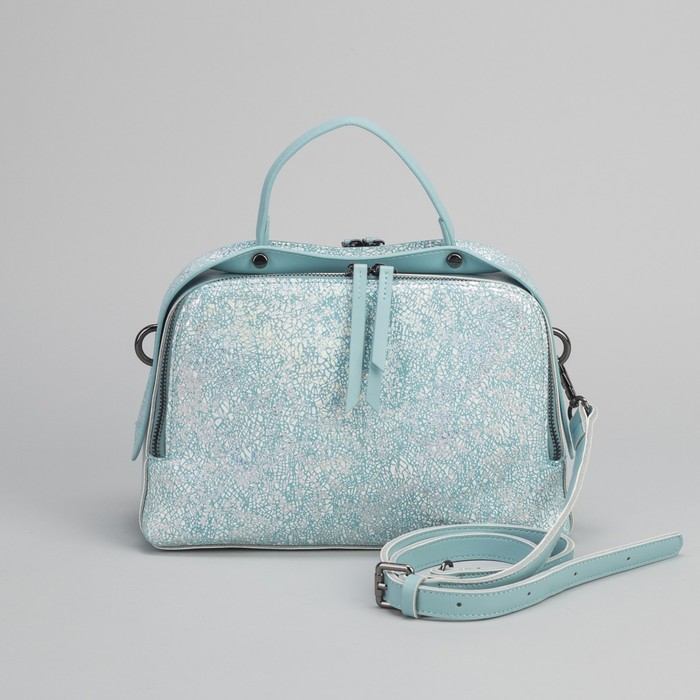 Сумка женская, замша, 2 отдела на молнии, наружный карман, длинный ремень, цвет голубой