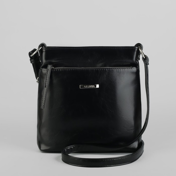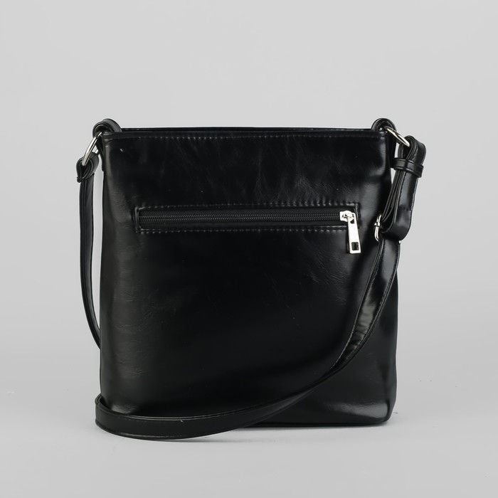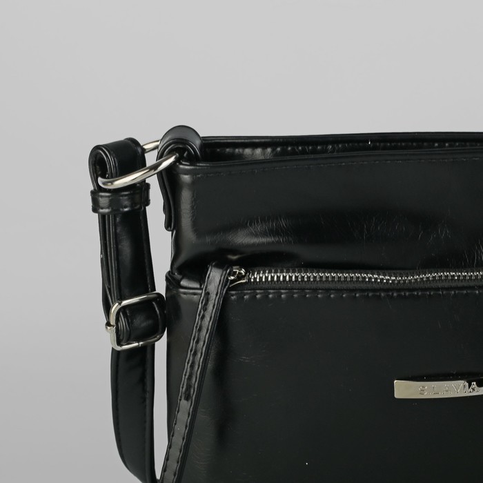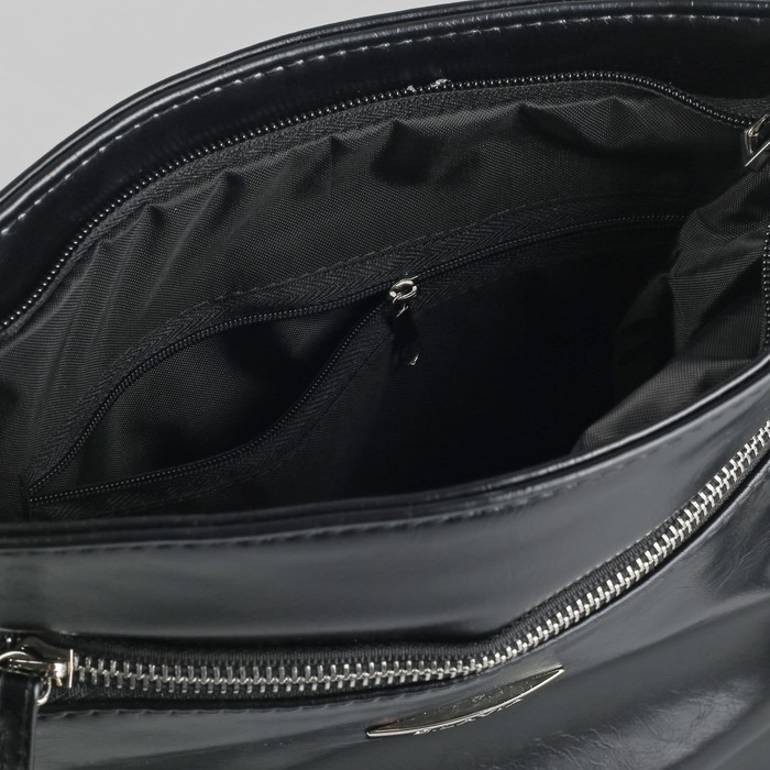 Сумка женская, замша, отдел на молнии, 2 наружных кармана, регулируемый ремень, глянец чёрный
