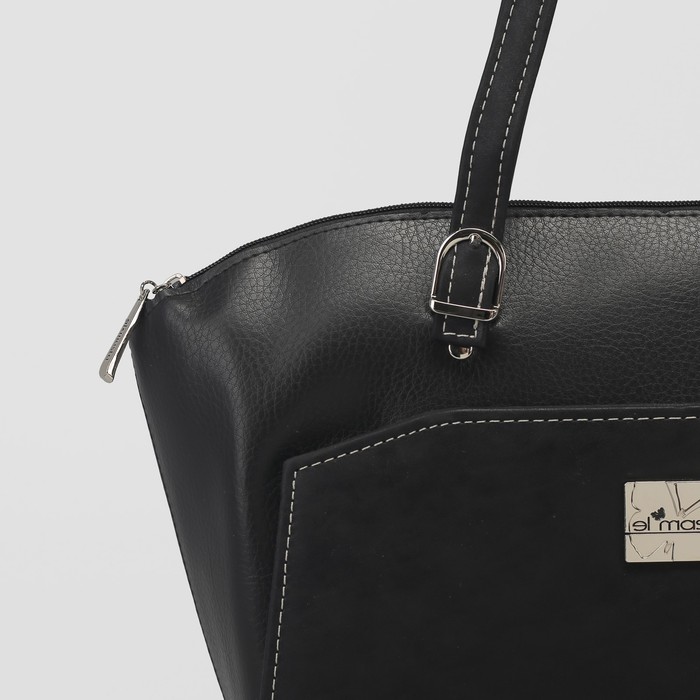 Сумка женская, замша, отдел на молнии, наружный карман, длинный ремень, цвет чёрный