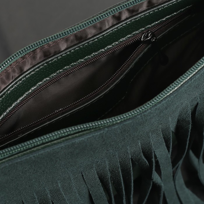 Сумка женская, замша, отдел на молнии, наружный карман, длинный ремень, цвет зелёный