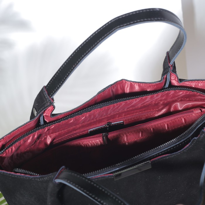 Сумка женская, замша, отдел с перегородкой на молнии, 3 наружных кармана, длинный ремень, цвет чёрный