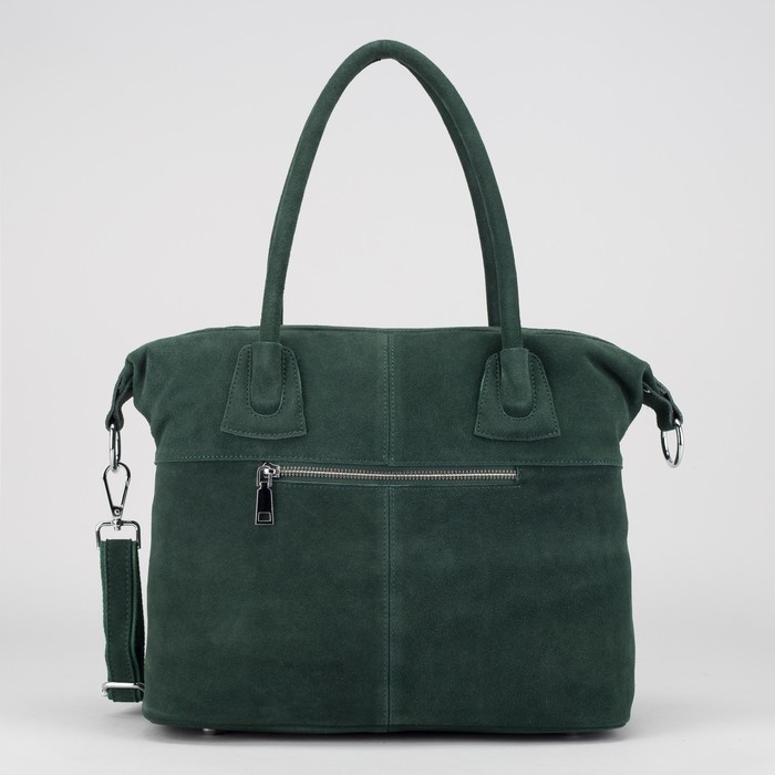 Сумка женская, замша, отдел с перегородкой на молнии, наружный карман, длинный ремень, цвет зелёный
