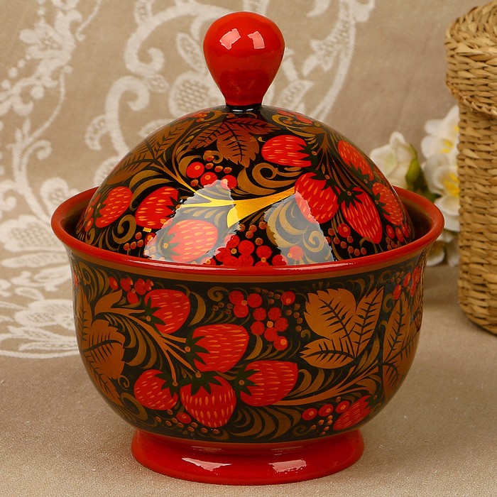 Супница «Земляничка», с крышкой, 10х16 см, 600 мл, хохлома