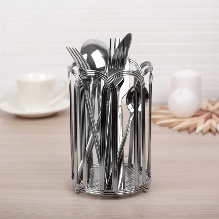 От качества посуды зависит не только вкус еды, но и здоровье человека. Сушилка для столовых приборов 10.5х10,5х16,5 см, цвет хром — товар, соответствующий российским стандартам качества. Любой хозяйке будет приятно держать его в руках. С нашей посудой и кухонной утварью приготовление еды и сервировка стола превратятся в настоящий праздник.