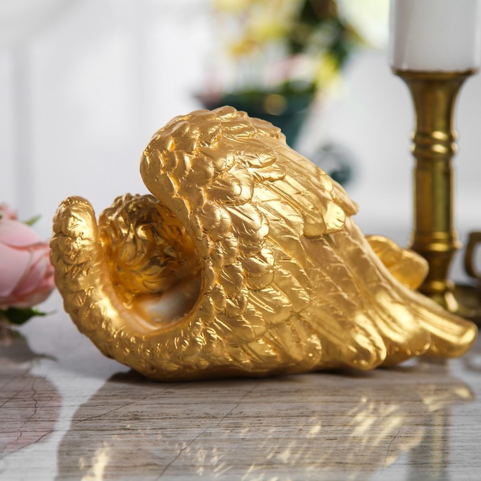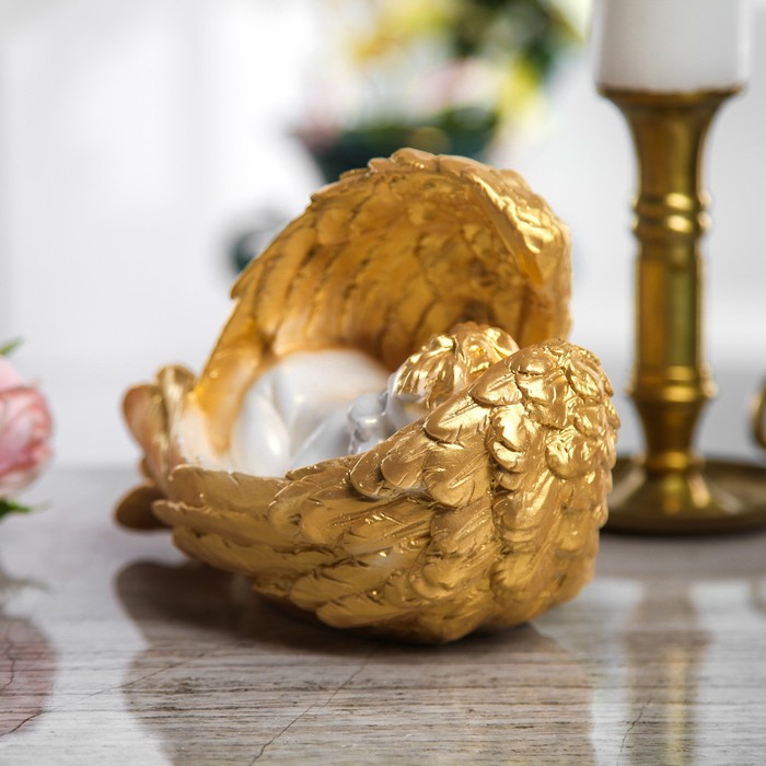 Сувенир "Ангел спящий" лежа в крыльях, большой, белый, золото