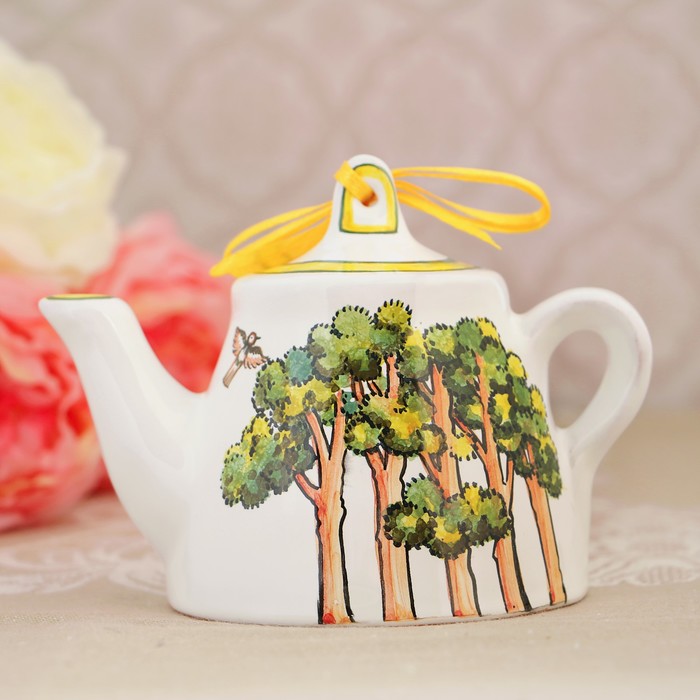 Сувенир «Чайник-колокольчик с пейзажем», 9х10 см, ярославская майолика