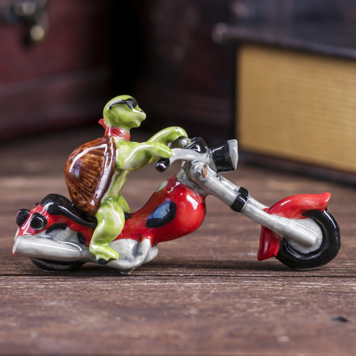 Сувенир "Черепаха-байкер" — сувенир в полном смысле этого слова. И главная его задача — хранить воспоминание о месте, где вы побывали, или о том человеке, который подарил данный предмет. Преподнесите эту вещь своему другу, и она станет достойным украшением его дома.